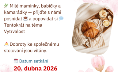 🌿 Milé maminky, babičky a kamarádky — přijďte s námi posnídat ☕️ a popovídat si 💬 Tentokrát na téma Vytrvalost. 🗓️ Pondělí 20. dubna 2026. 🍰 […]