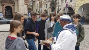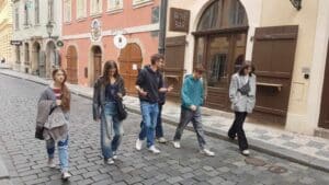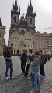 Na přání žáků proběhlo též setkání se známou osobností, s kterou žáci deváté třídy strávili jedno hravé dopoledne – kde jinde než v ulicích krásné Prahy. Objevili nejrůznější zákoutí a velice hezkou a příjemnou formou získali mnohé nové nebo staré neobjevené informace o hlavním městě. Děkujeme paní učitelce Kosmákové za zprostředkování! A o jaký doprovod dětí šlo už zjistíte sami 😊 .