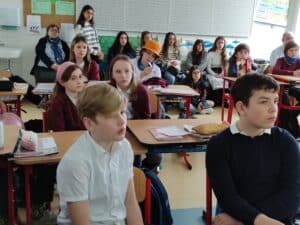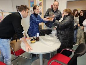 V pondělí byli v naší škole poprvé. Měli pro nás připravené prezentace o Španělsku. Na oplátku pro ně připravili naši sedmáci prezentace o Česku a deváťáci představili „tapas checas“, tedy „typické jídlo z Čech“.