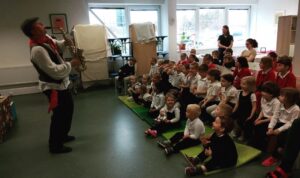 Na Velikonoční úterý byla pro naši mateřskou školu a první třídu ZŠ připravena hudební vzdělávací pohádka – Jak se Honza učil muzikantem – od Filharmoniště.