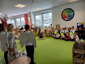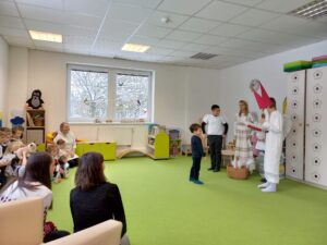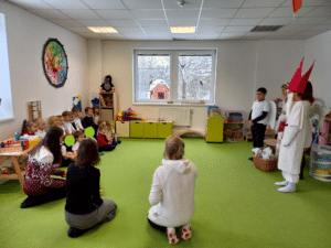 Děkujeme žákům 6. třídy naší ZŠ, že pro své mladší kamarády připravili krásného Mikuláše! Děti Mikulášovi a andělům zazpívaly písničku „Sněží“.