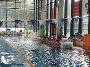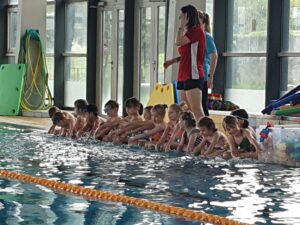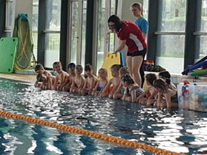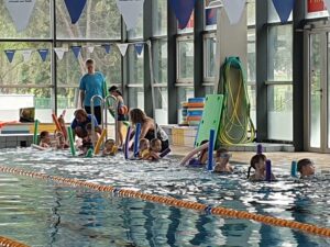 Část dětí z mateřské školy chodí od dubna plavat. Učí se základům plavání a užívají si společného „dovádění“ ve vodě.