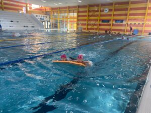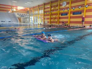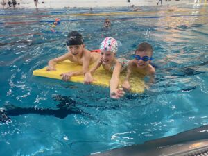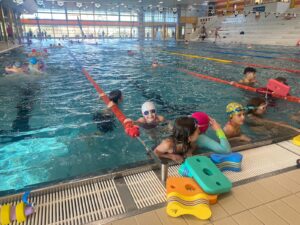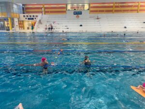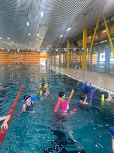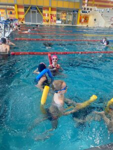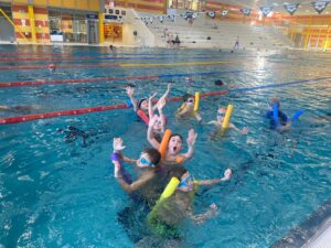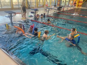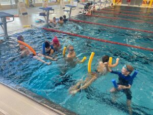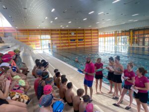 Třetí až pátá třída si užívá vodní aktivity na plaveckém výcviku.