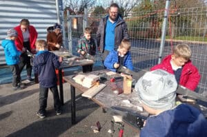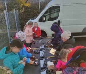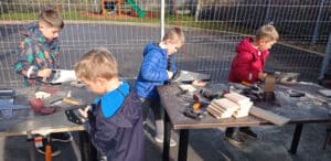Žáci měli ukázku tří vybraných řemesel a každé dítě si vše mohlo vyzkoušet, konkrétně práci elektrikáře, tesaře a umělce.