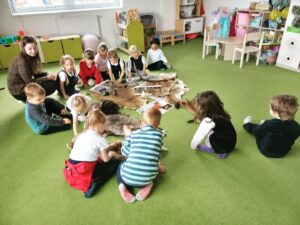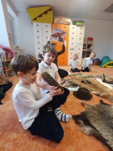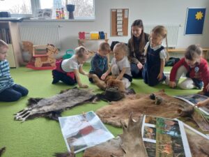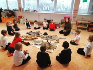 V pátek jsme měli ve školce program od organizace Lesy hl. města Prahy: “Povídání se zvířátky”. Děti si mohly osahat různé srsti (kuny, lišky, bobříka, jezevce, …), poslouchat zvuky lesních zvířat, prozkoumávat paroží a také si zahrály hry (co jedí zvířátka v lese, na vlka, …).