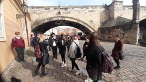 Krátké odreagování od školních povinností provázelo čtvrteční dopoledne žáky osmé a deváté třídy. Zúčastnili se naučno-zábavné vycházky v centru Prahy od organizátorů „Prahy hravě“. Formou hry, práce s mapou a sbírání grošů a diamantů prozkoumali zákoutí Karlova mostu a Kampy. Dozvěděli se, které fakulty jsou součástí Karlovy univerzity, proč na Staroměstské bráně „sedí podivný ptáček“, kdo a kde byl svržen z Karlova mostu, proč se lidé dotýkají pejska pod sochou Jana Nepomuckého, ale též například o záplavách v hlavním městě a mnohém dalším.