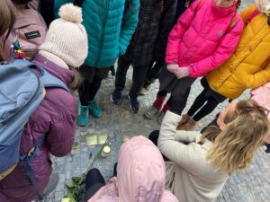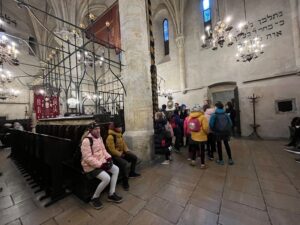 5. třída se vydala na prohlídku židovské Prahy. S paní průvodkyní jsme si ukázali a vysvětlili, co to jsou stolpersteiny. Společně jsme také navštívili čtyři synagogy – Maiselovu, Španělskou, Pinkasovu a Staronovou synagogu. Prošli jsme si i Starý Židovský hřbitov.