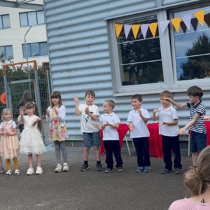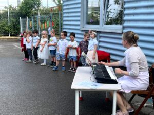 Děti nám zazpívaly krásné písničky a zatancovaly. Zpívaly i v angličtině. Pasovali jsme předškoláky na školáky a potom jsme si všichni pochutnali na dobrotách, které nám připravily maminky. Bylo to krásné odpoledne, které jsme si moc užili!