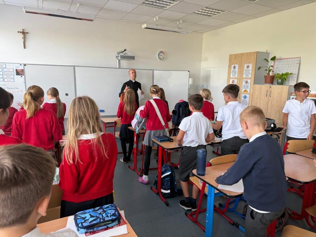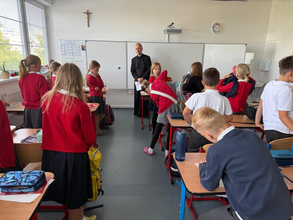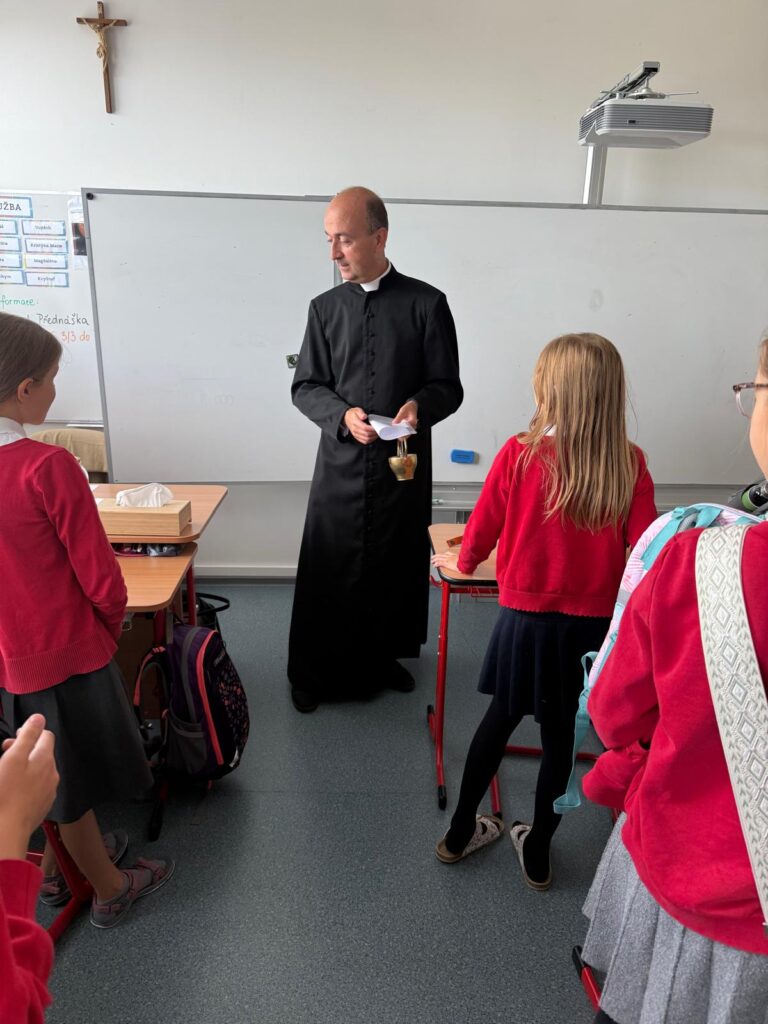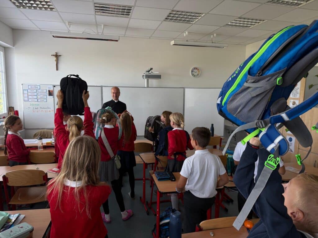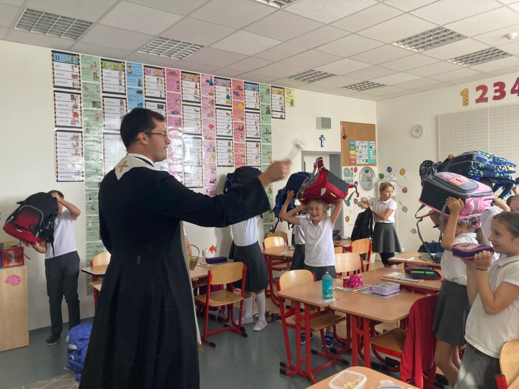 Ve středu 10. září požehnali otec Ángel a otec Jean školní aktovky našich dětí. Cílem tohoto setkání bylo připomenout dětem, že škola nestojí jen na znalostech, ale také na hodnotách, z nichž čerpáme. Naši školní kaplani tak prosili o Boží ochranu a pomoc, aby se dětem tento školní rok dařilo.